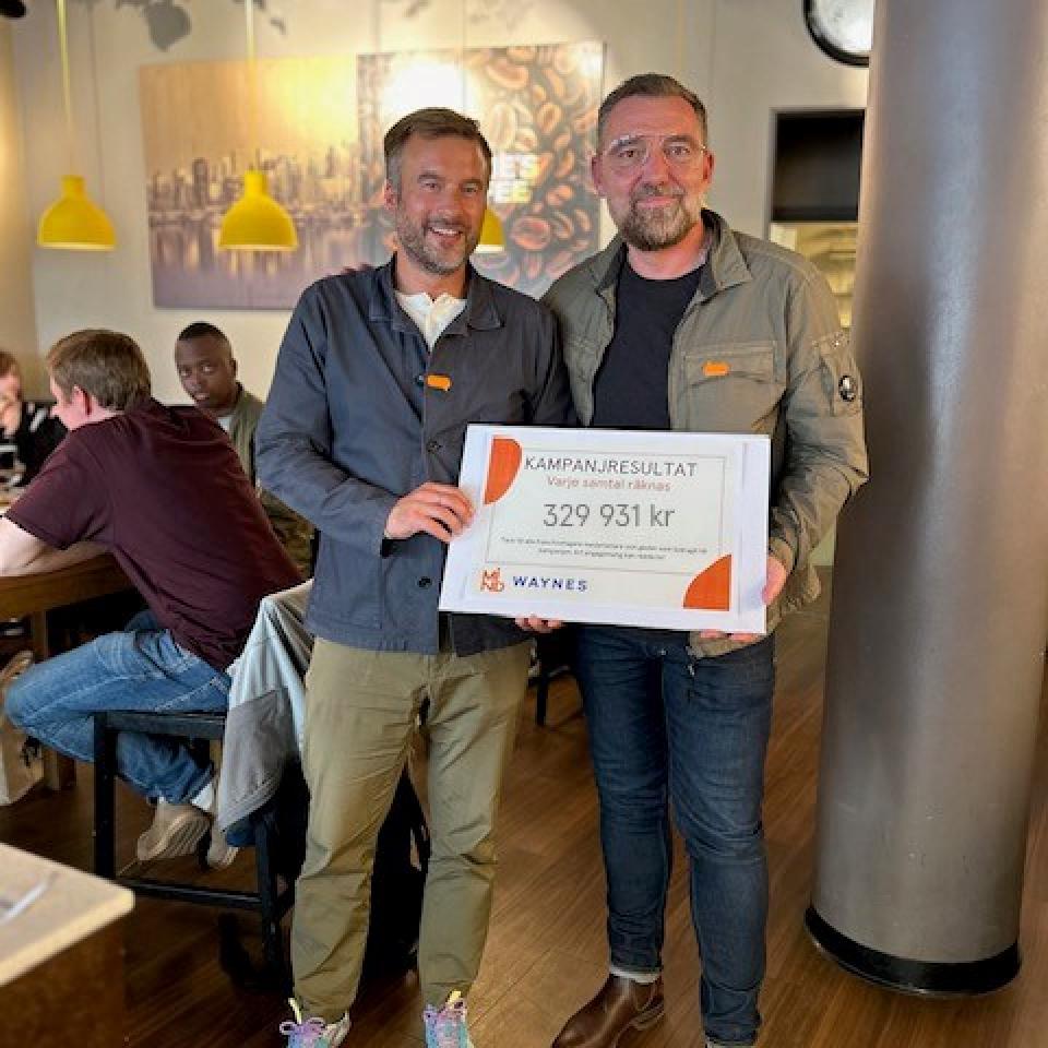 Tillsammans med alla fantastiska medarbetare på våra kaféer och våra gäster, har vi lyckats samla in 329 931 kr som går direkt till organisationen Minds fantastiska arbete. Med bidraget kommer Mind kunna fortsätta ta emot samtal i sina stödlinjer från människor i kris. Samtal som kan vara skillnaden mellan liv och död. Pengarna har samlats in