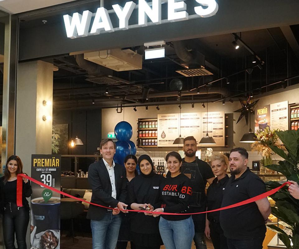 Waynes har expanderat kraftigt de senaste åren och öppnade under 2019 totalt 38 nya kaféer, fler än någonsin i företagets 25-åriga historia. Nu lanserar vi ett nytt koncept som innebär ett helt nytt utseende och flera smarta lösningar med en bageridel och en ny avdelning för färdigförpackade produkter – anpassade efter gästernas olika behov. Ett