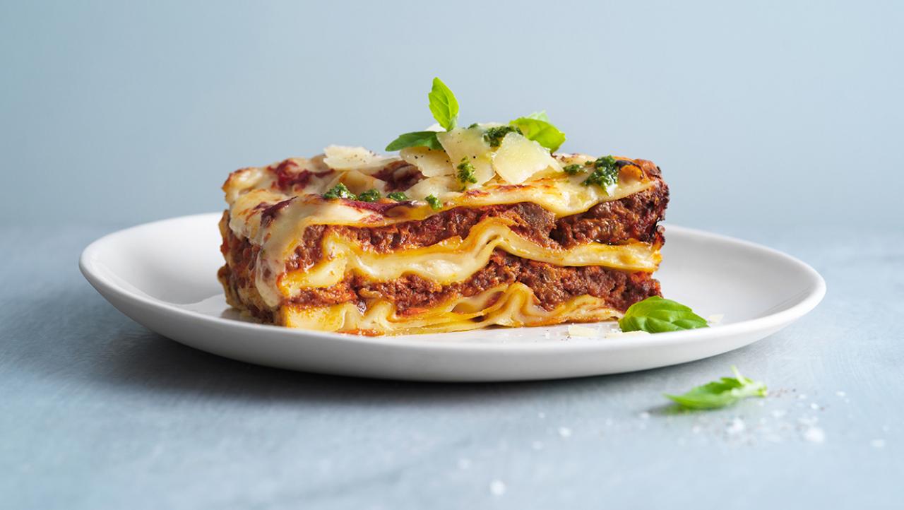 Ostsås (MJÖLK, OST (MÖLK, mjölksyrakultur, salt, konserveringsmedel (E202, E235), löpe), SMÖR, MJÖL, modifierad potatisstärkelse, salt, vitpeppar, cayennepeppar), köttfärssås (tomat, nötfärs, lök, morot, vitlök, rapsolja, balsamvinäger, kalvfond (vatten, salt, smakförstärkare (E621), jästextrakt, socker, nötköttsextrakt, modifierad stärkelse, smakämne, karamelliserat socker, tomatpulver, konserveringsmedel (E202, surhetsreglerande medel (citronsyra), förtjockningsmedel (E412, E415), kalvköttspulver), salt, socker, oregano, svartpeppar), lasagneplattor (DURUMVETE, vatten), OST (MJÖLK, mjölksyrakultur, salt, konserveringsmedel (E202, E235), löpe), örtolja (rapsolja, ruccola (12,5%), basilika (10%), vitlök, salt, svartpeppar, konserveringsmedel (E270, E202, E211).